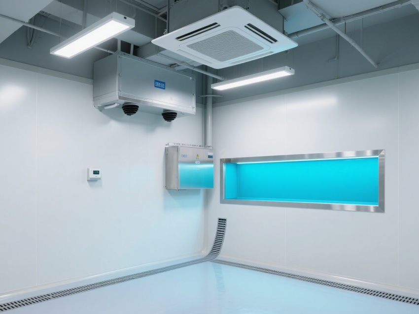 空間布局兼顧功能性與規(guī)范性,各類設(shè)施接口配置充足,圓弧墻角設(shè)計(jì)避免積塵,藍(lán)色標(biāo)識(shí)線清晰劃分區(qū)域。整體工程通過溫濕度精準(zhǔn)控制、潔凈環(huán)境打造與智能監(jiān)控的協(xié)同,為電子、光學(xué)、精密制造等對(duì)環(huán)境敏感的產(chǎn)業(yè)提供了穩(wěn)定可靠的生產(chǎn)空間,是保障產(chǎn)品品質(zhì)與生產(chǎn)精度的關(guān)鍵支撐單元。