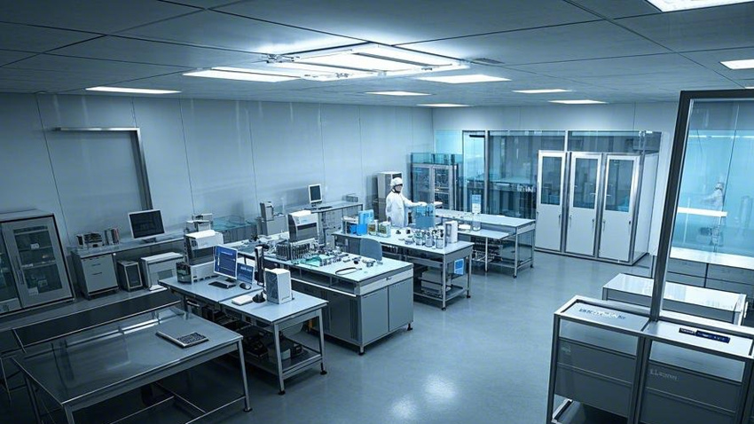 1000平方米電子無塵車間,現(xiàn)代科技風格,干凈整潔,光線明亮。核心生產(chǎn)區(qū)占70%,輔助區(qū)占20%,辦公區(qū)占10%。核心生產(chǎn)區(qū):防靜電環(huán)氧地坪(淺灰色),白色彩鋼板墻面和天花板,垂直層流氣流,頂部高效過濾器(HEPA),不銹鋼工作臺,設備排列整齊。輔助區(qū):更衣室(淺藍色墻面,衣柜和長凳),風淋室(透明玻璃門,不銹鋼墻面),物料緩沖間(傳遞窗,白色墻面)。辦公區(qū):玻璃隔斷,現(xiàn)代簡約辦公桌,防靜電PVC地板(淺色),LED面板燈。整體色彩:白色、淺灰色、科技藍點綴。