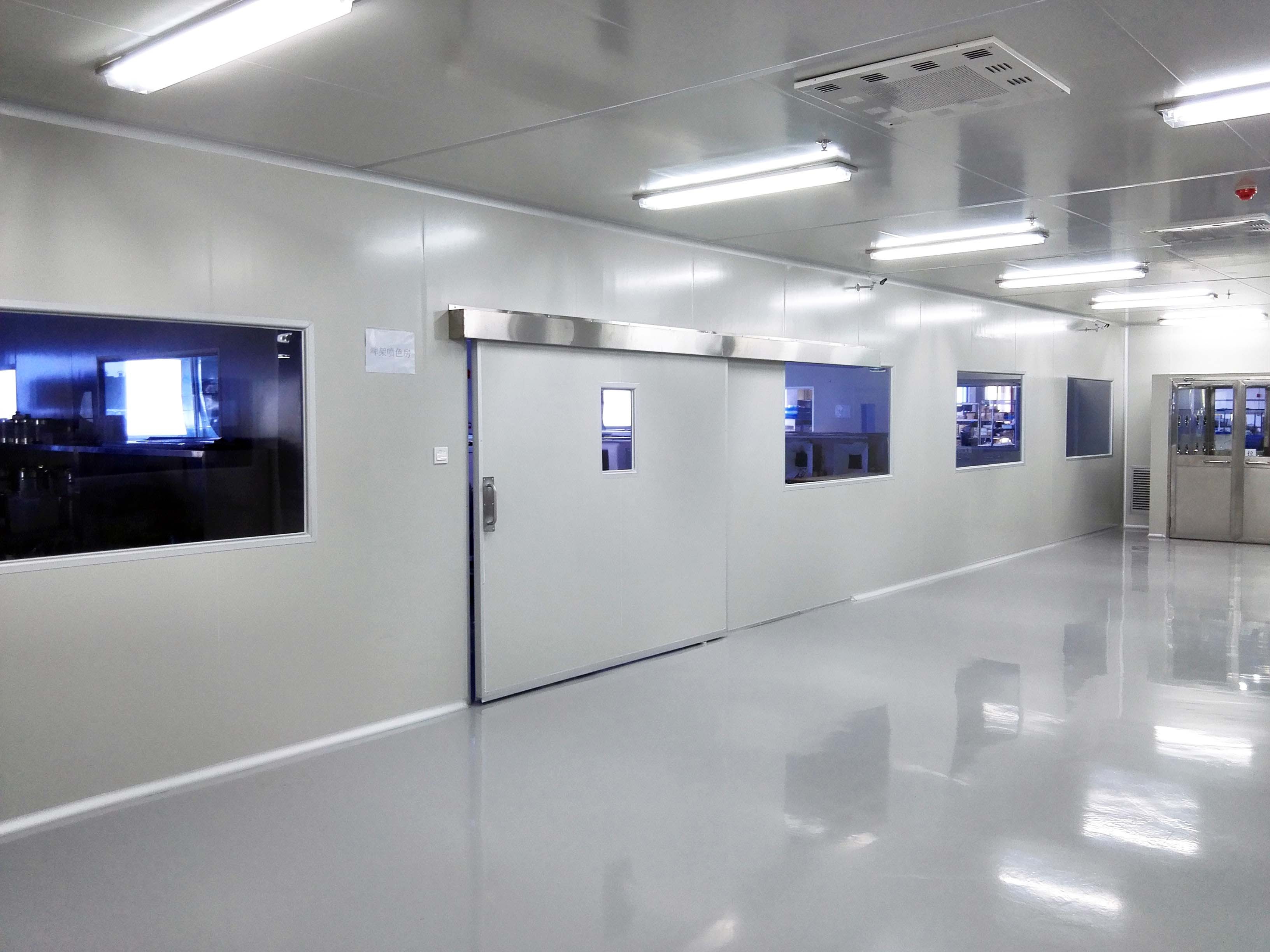 1、潔凈廠房為了保持室內(nèi)清潔,送風(fēng)管,燈具安裝在夾層里,很多廠房施工工藝選擇彩鋼板夾心吊頂。重量輕、強(qiáng)度大、整體性好,保溫隔熱發(fā)塵小。比較適用于GMP出產(chǎn)廠房。可是吊頂?shù)墓潭ㄓ斜匾c結(jié)構(gòu)主體相連,不能與設(shè)備,管線支架混用。吊頂與墻面要潤滑銜接。吊頂與送回風(fēng)管口要可靠關(guān)閉。吊頂安裝完成后要進(jìn)行燈檢,確保無縫隙。依據(jù)工藝要求,一般在技能夾層內(nèi)應(yīng)設(shè)置檢修走道,便于管道的檢修和替換過濾器以及技能夾層的墻面與天棚需刷涂料飾面。