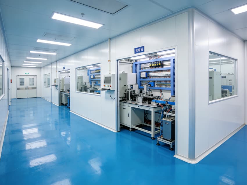 消防應急標識、潔凈壓差顯示裝置與操作 SOP 看板嵌入墻面,既符合工業安全規范,又提升裝配效率;