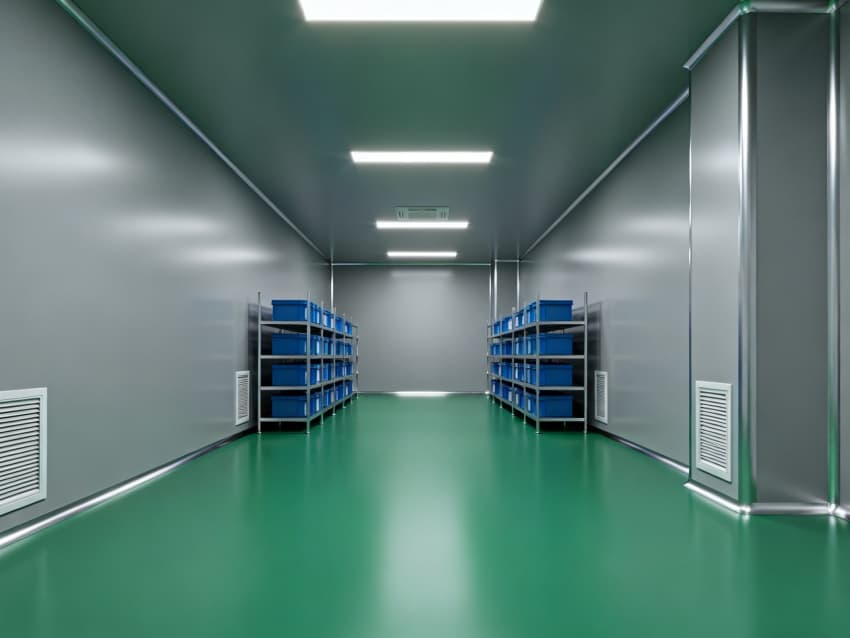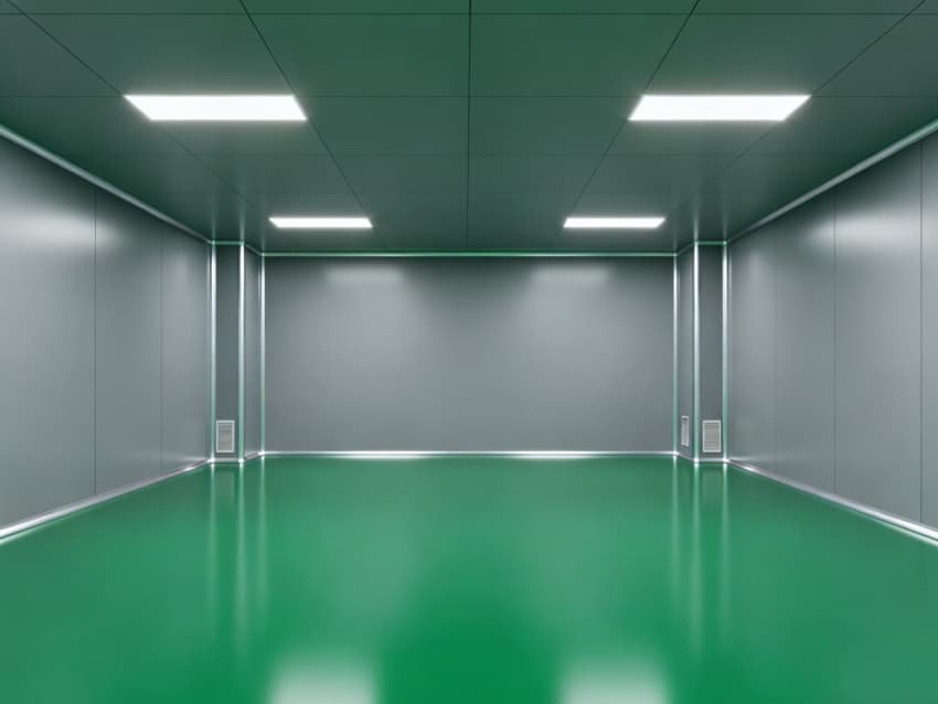耐化學性與低揮發性不容忽視。車間大量使用光刻膠、清洗劑、蝕刻液等化學品,材料需具備耐酸堿、耐溶劑特性,防止腐蝕、溶脹和異味釋放。墻面、臺面板可選用耐腐蝕理化板或不銹鋼板,地面環氧材料需具備抗化學品滲透性能。同時所有材料必須低 VOC、無異味、環保達標,避免有機揮發物在潔凈室內冷凝,污染玻璃基板與鍍膜表面。
