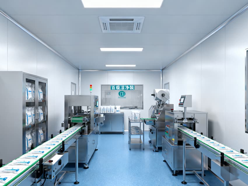 凈化配套設(shè)計全面:藍(lán)色地面具備抗菌、易消殺特性,配合地面導(dǎo)坡設(shè)計加速清潔排水,減少污漬殘留;白色墻面采用無縫抗菌涂層,消除清潔死角,降低微生物附著風(fēng)險;全車間劃分獨立凈化分區(qū),通過壓差控制預(yù)留設(shè)計隔絕不同潔凈等級區(qū)域,人流、物流通道分離避免交叉污染,全方位保障無菌生產(chǎn)環(huán)境穩(wěn)定達(dá)標(biāo)。