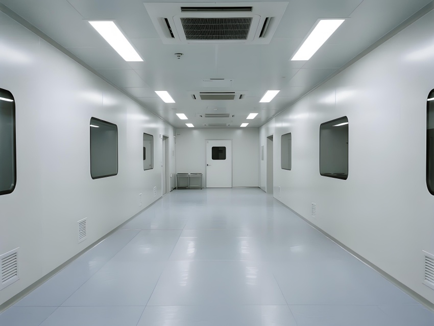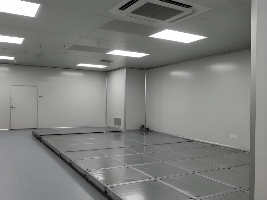 地面為導(dǎo)靜電高架地板系統(tǒng),確保微振動(dòng)控制與管線隱蔽;墻面采用航空級鋁復(fù)合板,陽極氧化處理防靜電;頂面集成ULPA超高效過濾模塊,配合負(fù)壓梯度控制氣流。
