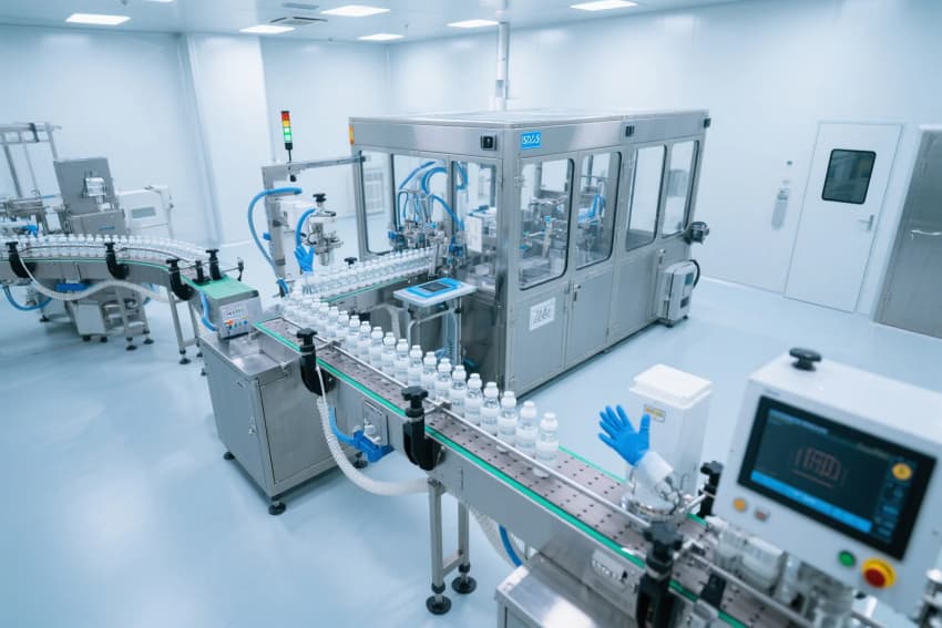 本工程嚴(yán)格遵循GMP及ISO14644-1Class8標(biāo)準(zhǔn),專為無菌制劑灌裝生產(chǎn)打造高標(biāo)準(zhǔn)潔凈環(huán)境。整體采用醫(yī)療級(jí)白色抗菌彩鋼板與淺灰環(huán)氧自流平地坪的潔凈配色方案,營(yíng)造