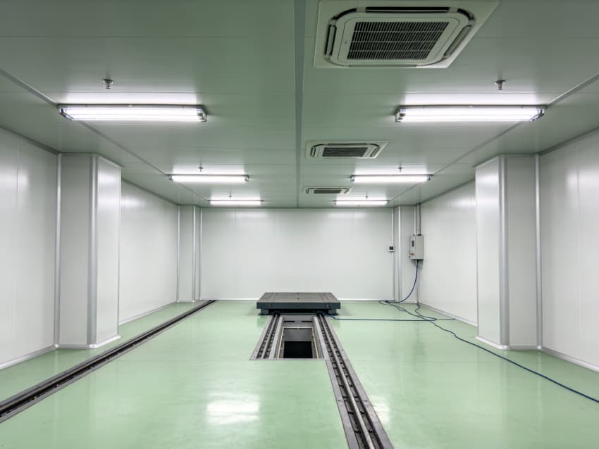 車間內(nèi)部施工工藝凸顯工業(yè)適配性:地面采用淺綠色防油耐磨環(huán)氧地坪工藝,經(jīng)基層固化處理、環(huán)氧砂漿找平、耐磨骨料撒布、罩面封閉四道核心工序,表面平整度誤差≤0.8mm/m,抗壓強(qiáng)度達(dá)C30以上,可耐受設(shè)備碾壓與油污侵蝕;墻面采用白色工業(yè)級潔凈涂層施工,推行無縫拼接技術(shù),陰陽角采用R40圓弧倒角工藝,杜絕積塵死角,涂層附著力強(qiáng),可耐受高頻次清潔與工業(yè)粉塵侵蝕。