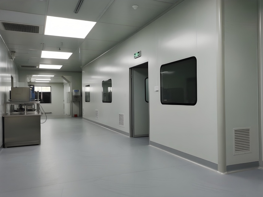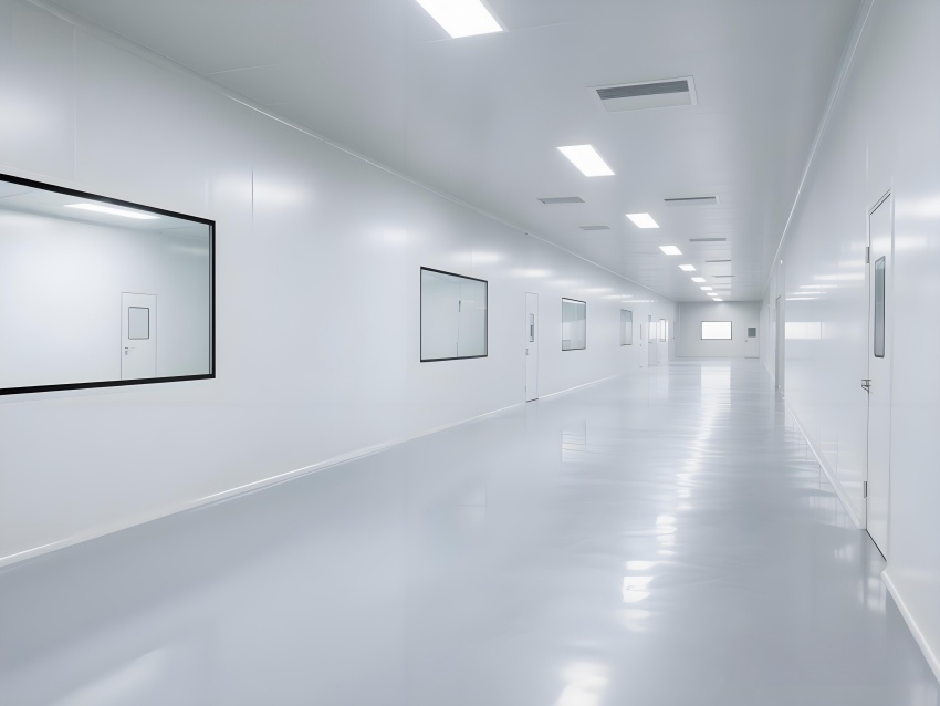 本凈化車間采用"科技極簡主義"風(fēng)格,通過流暢的線性布局與模塊化設(shè)計強(qiáng)化專業(yè)感。主空間以珍珠白與淺灰為基調(diào),搭配天藍(lán)色送風(fēng)管道形成視覺引導(dǎo),環(huán)氧地坪的鏡面效果反射頂部藍(lán)色凈化燈帶,營造無菌環(huán)境的通透感。設(shè)備區(qū)采用不銹鋼原色與玻璃觀察窗形成材質(zhì)碰撞,電子屏實(shí)時數(shù)據(jù)可視化增強(qiáng)科技屬性。嚴(yán)格的人貨分流設(shè)計通過色彩編碼實(shí)現(xiàn)功能識別,墻面嵌入式消防與應(yīng)急系統(tǒng)保持視覺平整。整體空間通過減少視覺噪點(diǎn)、強(qiáng)化功能分區(qū)線條,在滿足GMP動態(tài)潔凈要求的同時,呈現(xiàn)現(xiàn)代食品工業(yè)的精密與秩序之美,透明亞克力標(biāo)識牌與柔光照明進(jìn)一步減輕密閉空間的壓抑感。
