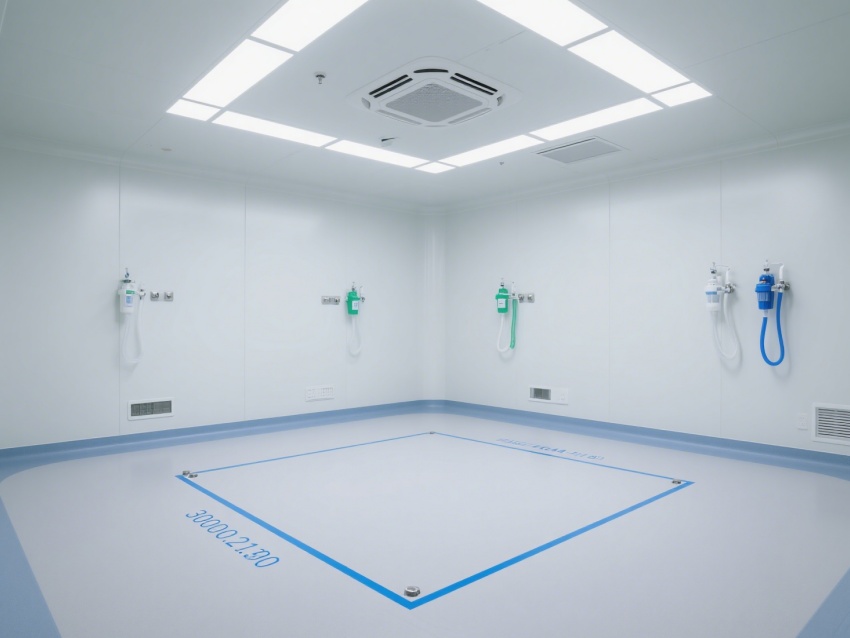 該醫療無塵室是為醫療診療與精密操作打造的專業潔凈空間。室內以白色為主調,搭配藍色標識系統,墻面、地面采用無縫抗菌材質,便于清潔消毒,有效防止微生物與灰塵污染。